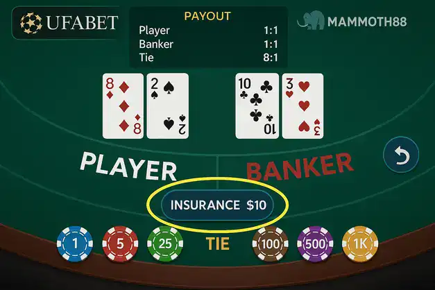 • สถานการณ์: ผู้เล่นทำการซื้อประกันภัยเพื่อลดความเสี่ยงจากการสูญเสียเงินเดิมพันหลัก